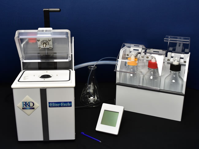 - 創(chuàng)新的軟件 RKD生產(chǎn)的Elite Etch是一臺(tái)自動(dòng)混酸開(kāi)封機(jī),通過(guò)整合了先進(jìn)的特點(diǎn)使得它可以獲得更高的產(chǎn)能。新開(kāi)封機(jī)的設(shè)計(jì)通過(guò)將硝酸、硫酸或混酸精確分配到器件上,可以更加快速和容易的打開(kāi)較精細(xì)的封裝,而不會(huì)損傷樣品。 RKD Elite Etch 酸開(kāi)封機(jī)內(nèi)包含了眾多工程創(chuàng)新。整體式刻蝕頭組件是由高等級(jí)的碳化硅加工而成,可以良好的用來(lái)抵抗酸腐蝕。再加上主動(dòng)氮?dú)獗O(jiān)測(cè)和清洗系統(tǒng),這一整體設(shè)計(jì)可以在刻蝕后降低殘留在刻蝕頭上酸的發(fā)煙—而對(duì)于其它沒(méi)如此復(fù)雜的設(shè)計(jì)則是一種常見(jiàn)現(xiàn)象。我們這種整體碳化硅選夠縮短加熱時(shí)間。 器件壓制組件(壓桿芯頭)是由手動(dòng)激活的,設(shè)計(jì)用于大量的運(yùn)動(dòng)。壓桿芯頭正常情況是縮回的,并且僅當(dāng)安全蓋完全關(guān)閉后才伸出。壓桿芯頭的垂直移動(dòng)保證器件穩(wěn)定在刻蝕頭上,從而消除了無(wú)論是器件還是夾具的移動(dòng)。 在每次開(kāi)始和結(jié)束刻蝕程序后,安全蓋由手動(dòng)關(guān)閉和打開(kāi)。關(guān)閉安全蓋,開(kāi)始已經(jīng)編制好的刻蝕步驟的程序,打開(kāi)安全蓋將停止所有刻蝕步驟。所有連接到刻蝕盤的酸管路由快速對(duì)稱壓力節(jié)點(diǎn)制成,以消除麻煩的高溫密封問(wèn)題。 掌上型鍵盤 通風(fēng)櫥的空間是非常珍貴的,所以我們已經(jīng)設(shè)計(jì)了較小的占地面積,同時(shí)增強(qiáng)了每一個(gè)可能的安全特性。單獨(dú)的熱交換器的引入可以將廢酸溫度降低到90攝氏度以下,這允許進(jìn)一步減小系統(tǒng)尺寸---我們僅僅使用一個(gè)廢酸瓶。 RKD Engineering集成了雙控制用于所有液體在瓶容器和開(kāi)封機(jī)之間進(jìn)行耦合。內(nèi)部連接是在特氟龍密封的管路內(nèi)運(yùn)行的,它可以由瓶子盒的任何一端來(lái)供給。瓶子容器裝置內(nèi)包含了液體傳感器,當(dāng)酸從任何一個(gè)瓶子中泄露后都會(huì)給操作員發(fā)出警告。Elite Etch開(kāi)封機(jī)即能夠使用500ml美標(biāo)瓶子,也可以使用日本標(biāo)準(zhǔn)的瓶子。 系統(tǒng)安全 產(chǎn)品規(guī)格參數(shù) 尺寸 (w x d x h) 軟件操作規(guī)格 混酸比例 (硝酸到硫酸比例): 9:1, 5:1, 4:1, 3:1, 2:1, 1:1 刻蝕后沖洗選擇:發(fā)煙硫酸/發(fā)煙硝酸/混酸/無(wú)沖洗 刻蝕時(shí)間:1 - 1,800 seconds ( 1秒的增加幅度) 刻蝕形式: 刻蝕劑流量選擇:1 - 6 ml.每分鐘(所有酸和混酸) 操作程序存儲(chǔ):100 個(gè)程序存儲(chǔ),非易丟失存儲(chǔ)器 軟件升級(jí):通過(guò)RS232或USB連接電腦 安全設(shè)計(jì)特點(diǎn) |