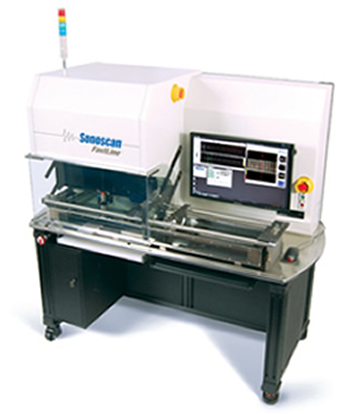 為了提高生產(chǎn)車間內(nèi)微電子元器件的篩查效率,Sonoscan 專門設(shè)計(jì)了Fastline? P300? 超聲波掃描顯微鏡。作為超聲顯微成像技術(shù)的新平臺(tái),F(xiàn)astline的緊湊設(shè)計(jì)縮小了占地空間,其獨(dú)特的輸送系統(tǒng)能夠在掃描一個(gè)JEDEC托盤或樣品盤的同時(shí)將下一次要掃描的樣品放在水中的另一個(gè)托盤上等到掃描。 Fastline? P300?特色: 獨(dú)特輸送系統(tǒng)有助于實(shí)現(xiàn)產(chǎn)量的提高 C-SAM 杰出的超聲顯微成像技術(shù) 超聲顯微技術(shù)的杰出之處在于它能夠在組件和材料中找出可能在生產(chǎn)或可靠性試驗(yàn)中出現(xiàn)的隱藏的缺陷。 不同于X射線和紅外成像等其他無損檢測(cè)技術(shù),超聲顯微成像技術(shù)則是利用超聲波對(duì)材料彈性特性較為敏感的特性。超聲波可能會(huì)因?yàn)榻佑|物質(zhì)的改變而被吸收、散射或反射,而且對(duì)空氣間隙特別敏感。 Sonscan? 提供多種成像模式,操作員可以根據(jù)樣品內(nèi)部結(jié)構(gòu)特征選擇適當(dāng)?shù)某上穹绞揭垣@得有關(guān)檢驗(yàn)樣品的掃描圖像。此外,通過利用我們的專有的先進(jìn)功能,Sonscan可以提供高清晰的圖像、高效率和良好的檢測(cè)結(jié)果。 Sonscan的C-SAM成像技術(shù)用于發(fā)現(xiàn)及分析在生產(chǎn)過程或可靠性測(cè)試過程中出現(xiàn)的缺陷。比起其他檢測(cè)方法,使用超聲顯微成像方法更能有效地識(shí)別并分析脫層、空洞及裂縫等缺陷。 |